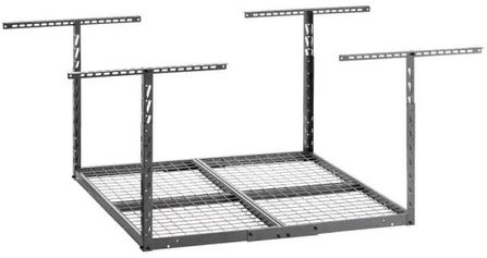 Gladiator® Overhead GearLoft™ Storage Rack adds a new dimension to garage organization. Get a range of items off the floor, from seasonal items and building supplies to full-sized bins and totes. The adjustable height allows for up to 50 cu. ft. of storage, and the rack holds up to 350 lbs of evenly distributed weight. Assembly is quick and hassle-free, thanks to our EZ Connect technology. The heavy duty rack, corrosion resistant hard coat finish, and built-in decking provide durability, while the EZ Connect locking pins hold connection points in place. Covered by Gladiator brand's 10-year limited warranty, you can count on this overhead storage for years to come.Read More